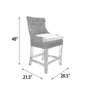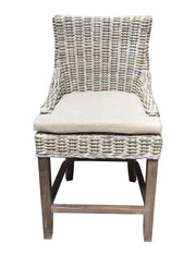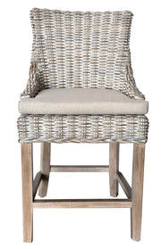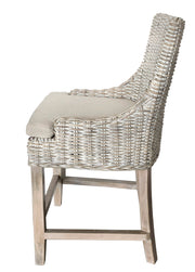 Counter Height Stool, Alfresco, Kuba Weave, White Wash, Hand Made, Mahogany Frame, Neutral Cushion Coastal, Farmhouse, Rustic