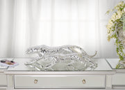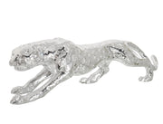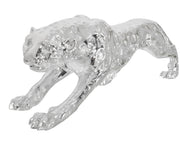 31"L Big Cat Collector Statue Silver Leopard Cheetah Panther Running Figurine