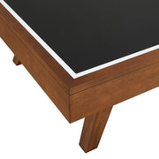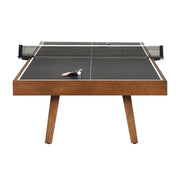 Everything great about table tennis comes to life on this beautiful, mid-century modern table tennis table that is sure to become a centerpiece of your game room. The black table tennis top is inset into the whiskey finished frame to provide years and years of high-quality game play. The table also features adjustable leg levelers to ensure a level surface so that all you have to worry about is getting the ball over the net.