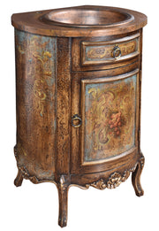 Perfect for the powder room, the bestselling Lima Copper vanity features drum design and copper vanity top and sink. The Santa Lucia Product Line is handmade by skilled artisans and hand finished adding character to each piece of furniture.