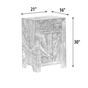 The Mango Wood Solid Parquet Bedside 2 Door Cabinet is a hand made imported Night stand or Bedside cabinet and part of the beautiful Mango Wood Solid Parquet Bedroom Collection. The collection has many offerings for your selection such as a King or Queen size bed option, dressers, mirror, media cabinets upholstery and more. Solid Mango hardwoods are used to create the beautiful artistic parquet design. Naturally finished with a satin sheen that protects and enhances the wood. The grain of the Mango Wood offers beautiful variations of natural color with rich depth and tone. This handsome cabinet features 2 doors and 2 drawers for extra storage. Hand Made and Hand Finished in India for AFD Home. No Assembly Required.