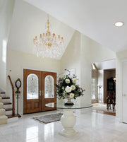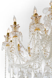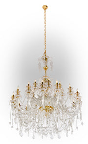 Elevate your space with the grandeur of the Marseille Grand Crystal Chandelier. This larger model mirrors the exquisite design of its smaller counterpart but is tailored for more expansive areas, weighing 104.5 lbs and requiring 24 E12, 60W bulbs. It features the same high-quality steel, crystal, and glass construction, with crystals imported from Egypt. This chandelier is a statement piece that not only lights up a room but also adds a touch of timeless sophistication to any large space.