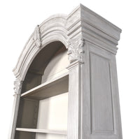 The Mystique Grey Continental Casual Bookcase is a beautiful handmade bookcase that measures 58 inches Wide X 17.5 inches Deep X 95.5 inches Tall. The bookcase features a well defined bonnet top to center crest atop Corinthian carved fluted pilasters with recessed paneled sides. The item shown is finished in our Mystique Gray finish and can be combined with many other accompanying items with this popular new finish. The Bookcase is Hand made in Mahogany by the Heritage Collection. A fine hand made furniture collection in the purest of standards of age old traditional crafting. Each piece is hand carved one piece at a time by some of the best world carvers. In addition, the item in its final form is stress and pressure tested prior to finishing to insure long lasting stability in most all climates, a Heritage Brand standard. The final step of hand making furniture is the application of the beautiful hand applied finishes. The specialty finishes used combine hand applied layering, glazing, padding, distressing and crackling techniques and complete the beauty and value of owning timeless Heritage Furniture, a quality that will last for generations of ownership. Made by hand and imported from Indonesia. No Assembly required