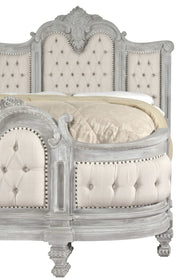 From The Best, The World Has to Offer comes the Mystique Mahogany Maison Royale Bed King at 81 inches Tall is a crowning jewel from our new Mystique Mahogany Collection from Heritage a division of AFD Home lending richness to a simpler luxurious lifestyle. The Grandest of American scale from its tall curved radius Head Board to its luxurious inverted radius billowing tufted Footboard. The impressive hand carved details combine with spectacular on-trend Mystique Finishing, further softened by rich woven Linen. It is Handcrafted out of hand selected solid Mahogany wood that is then tastefully finished in our NEW intermediate Mystique Grey, a neutral or achromatic color. Our Mystique Grey finishing technique has evolved over the years and as such, is the special focus of this new Collection. Mystique Grey is so placeable by todays top designers because it is truly a color that is without color, A salute to a new contemporary, sophisticated lifestyle, a combination of finish and design that celebrate the beauty of fine grain of the Mahogany wood and enhance the vestiges of this rich wood gloriously visible in a tone that will create solidity to your overall design. This bed works beautifully with any of our Mystique Mahogany Grey Collection offerings. Hand Made beds of this nature and quality are very rare and as such, will surely become an heirloom for generations to come.