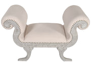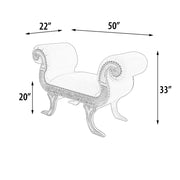 Our Mystique Mahogany Scrolled Love Seat with 50 " Length and 33" Tall is from our new Mystique Mahogany Collection from Heritage, a division of AFD Home lends richness to a simpler luxurious lifestyle. A turn of the century design brought to grander American scale with tall rolled arms, and impressive hand-carved details. While beautifully decorative, the seat provides a seating solution for an elegant vanity, a bed or window bench or settee. It is Handcrafted out of hand-selected solid Mahogany wood that is then tastefully finished in our NEW intermediate Mystique Grey, a neutral or achromatic color. Our Mystique Grey finishing technique has evolved over the years and as such, is the special focus of this new Collection. Mystique Grey is so placeable by today’s top designers because it is truly a color that is without color, A salute to a new contemporary, sophisticated lifestyle, a combination of finish and design that celebrate the beauty of fine grain of the Mahogany wood and enhance the vestiges of this rich wood gloriously visible in a tone that will create solidity to your overall design. This bench works beautifully with our Mystique Mahogany Maison Royale Bed King or pair it with any of the Mystique Mahogany Grey Collection offerings. No assembly required!