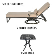 Outdoor Estate 3pc Swivel Chaise Lounge and Table Set Outdoor Aluminum, Sumbrella, Bridgeton Moore Patio Furniture