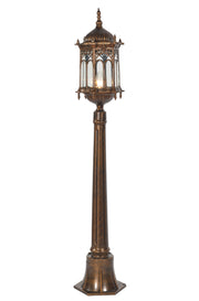 The Gothic Grassland Lamp shows style and elegance in medieval architecture. Featuring a rust proof cast aluminum composition with fantastic details of spires scrolls and archways surrounding the glass light enclosure. Pre-wired for ease of installation. Main electrical wiring is necessary.