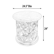 Platine Hand Carved Round Side Table w Creama Marfil Marble 24 Inches Tall