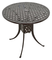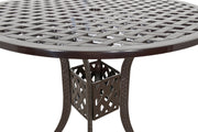 The Savannah Round Bar Table by Bridgeton Moore is a 42-inch diameter table standing 41 inches tall, perfect for outdoor pub-style gatherings. This table is a striking addition to the Savannah Collection, suitable for both home and commercial use, making it an ideal choice for event planners and public venues. Sold separately, the Pub Table pairs seamlessly with the matching Savannah Swivel Bar Stools, providing a complete set for your outdoor entertainment space. The Savannah Collection boasts a timeless design featuring a woven lattice pattern and a brown bronzed powder coat finish, blending seamlessly with any outdoor decor. Crafted from 100% aluminum, the bar table is built to last and will never rust, ensuring durability and longevity. With a 3-year warranty on all frames and finishes, Bridgeton Moore upholds high-quality standards. For maintenance, covers are recommended for year-round outdoor exposure and keeping the surface clean of debris will protect the finish. Assembly is required for the table, but with its timeless design and exceptional quality, it's a worthwhile addition to any outdoor space, elevating your outdoor entertaining experience with style and functionality.