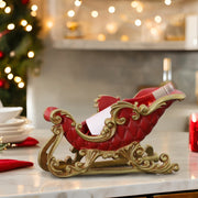 Sleigh Single Wine Bottle Holder Holiday decor Red and Gold