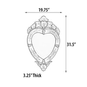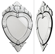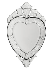 For the love of your life or just for love the elegant traditional Venetian Glass Heart Mirror by Timeless Reflections is simply beautiful. Individual pieces of mirror glass are hand cut and then etched by hand capturing the classic Venetian design. The etched mirrored glass is then attached to a strong wood back to support the delicate beauty of the mirror. Nearly 32 inches high the Venetian Glass Heart Mirror is a timeless design everyone is sure to treasure.
