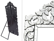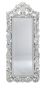 The Finest Venetian Style Premium Cheval Mirror 70.62 Inches Tall w Stand mounted is very hard to find design of a Venetian Style Mirror. A Cheval Mirror is a traditional Floor standing Mirror often used as a full length dressing Mirror with an example as beautiful as this offering you will feel like your in the company of Kings or Queens. This is also very nice for an application that might want to float a reflective bit of Elegance in a room and not be limited to a Wall Installation. The right mirror surely makes a big difference in making a room setting more beautiful this mirror designed for Horizontal Application would enhance any buffet, console or wall application suitable for a mirror of this size. Venetian Mirrors are considered amongst the most elegant and beautiful mirrors made and they will become a cherished treasure for future generations to come. While a Venetian Mirror is always a functional Artistic Focal Point they also serve to enhance elegant living spaces. Interestingly a well placed Venetian Mirror with its highly reflective light qualities also serve to increase the amount of interior light in a room and will brighten up your room. Today as has been for 100's of years before Venetian glass craftsmen still use time-proven hand crafted, artistic techniques often handed down from generation to generation From techniques of hand cutting, hand beveling, hand polishing and hand etching and the smaller the pieces the more pieces the finer the finished work. So congratulations on your selection of this fine Venetian Style mirror you have purchased amongst The Best The World Has To Offer.
