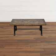 Wood and Industrial Iron Mango Parquet Coffee Table 54 Inch